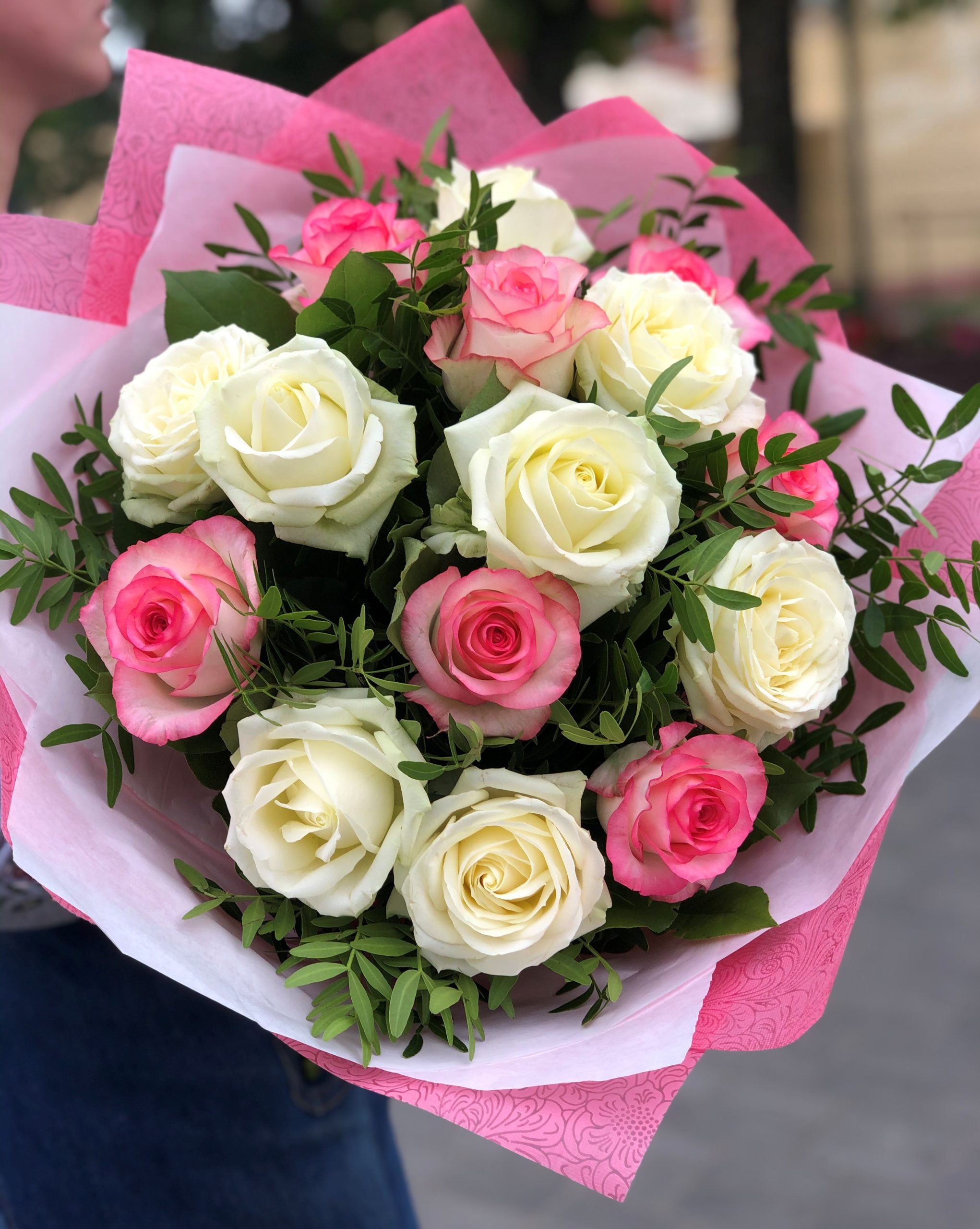 Букет “Праздничный день”.Состав: Роза одноголовая 15шт.,