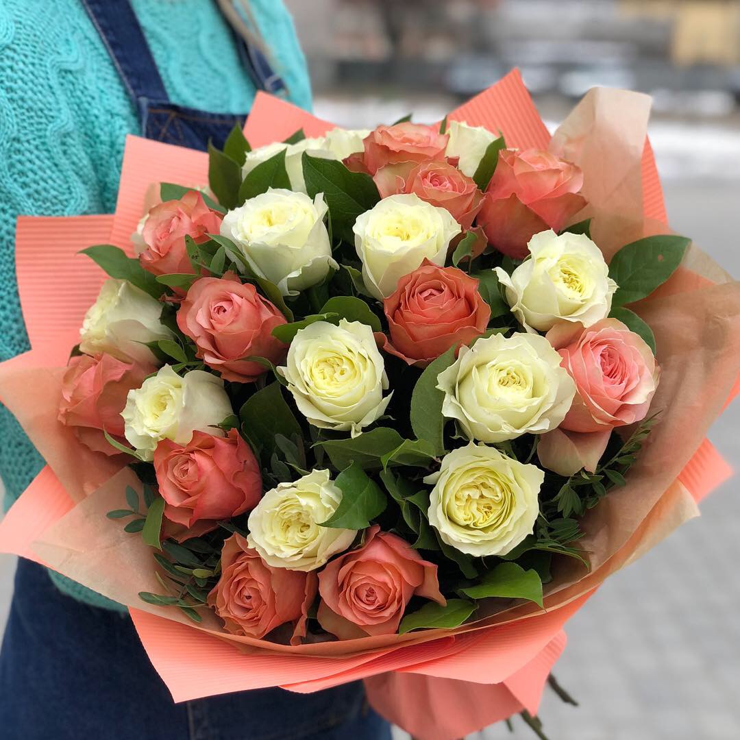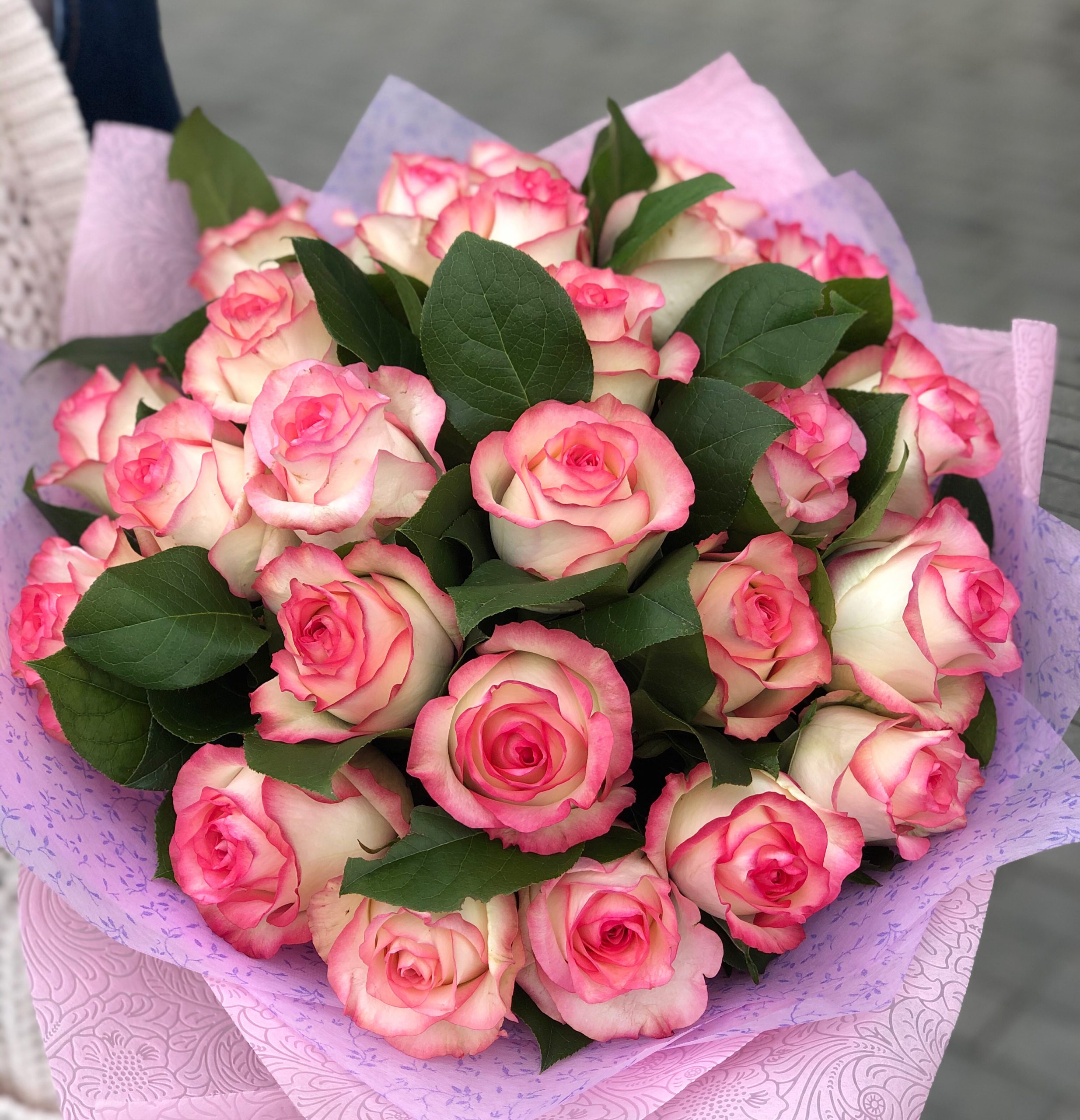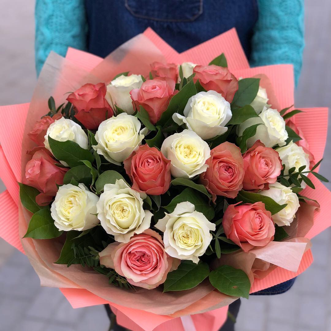 Зелень, подарочная упаковка, атласная лента. Цвет роз может быть подобран на вкус покупателя. Наличие уточняйте у менеджера. Производство РБ.