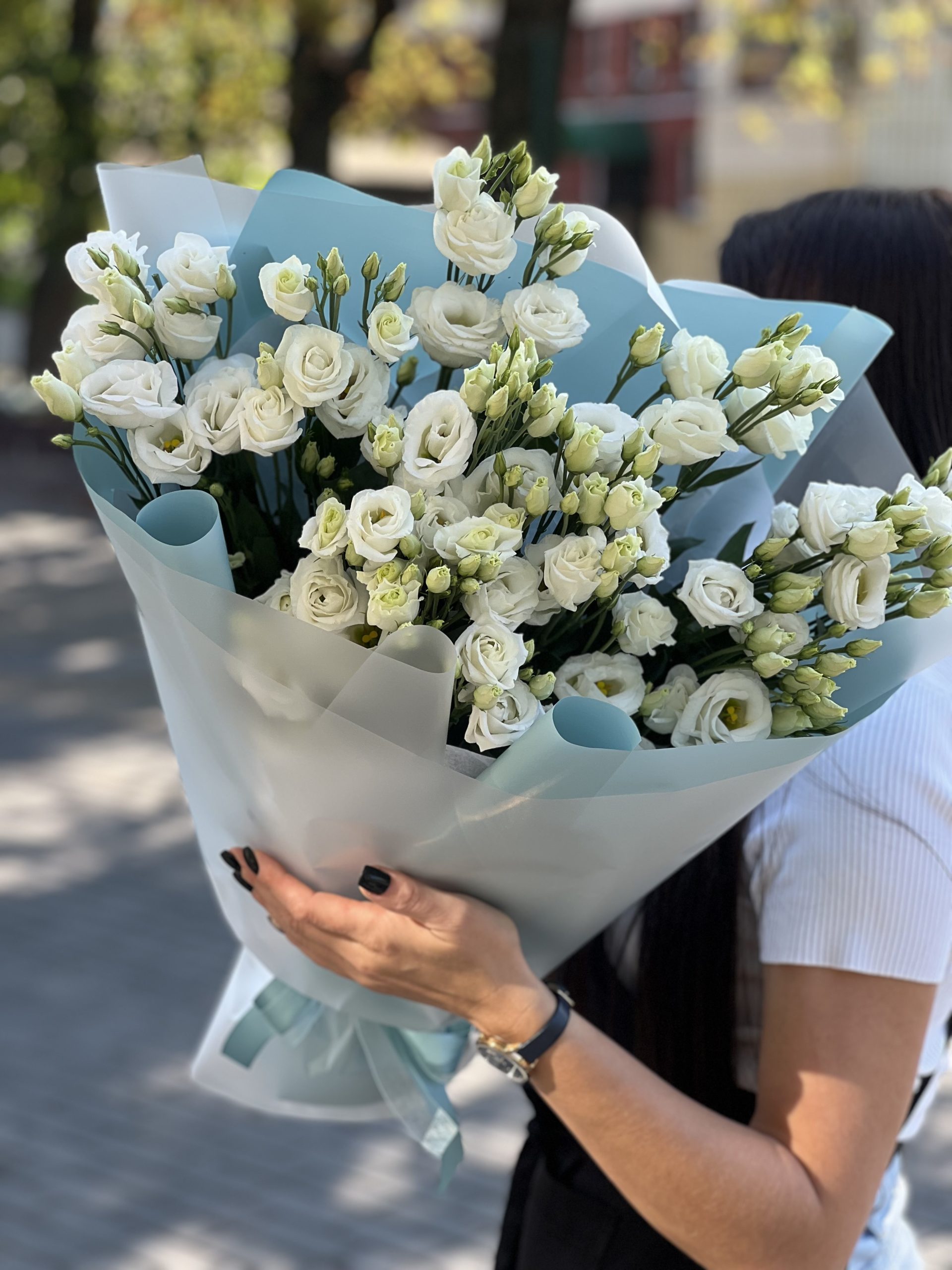 Букет “Моя нежность”. Состав: Эустома 9веток, подарочная упаковка, атласная лента. Цветовая гамма может быть изменена по желанию заказчика. Наличие уточняйте у менеджера. Производство РБ.