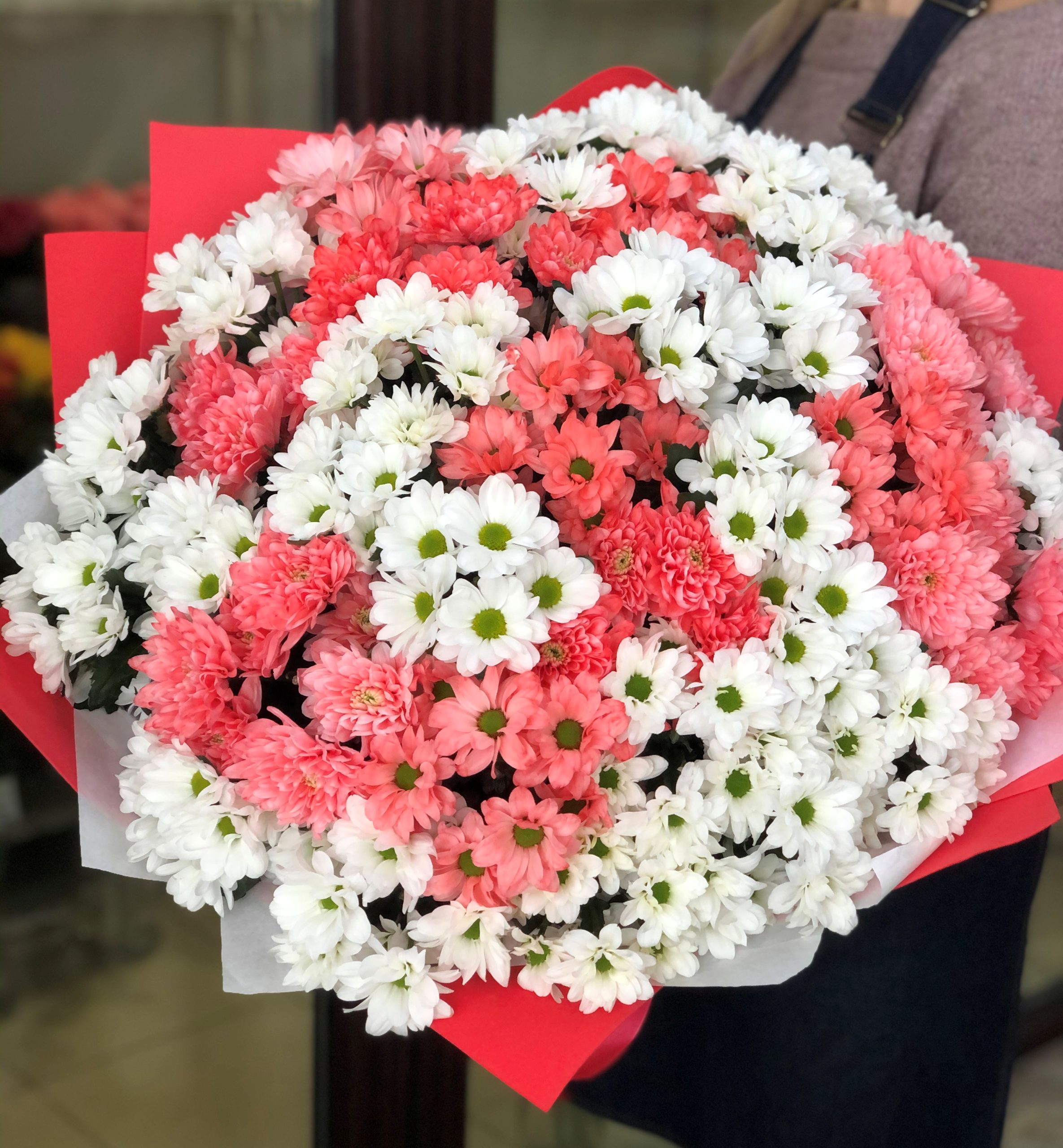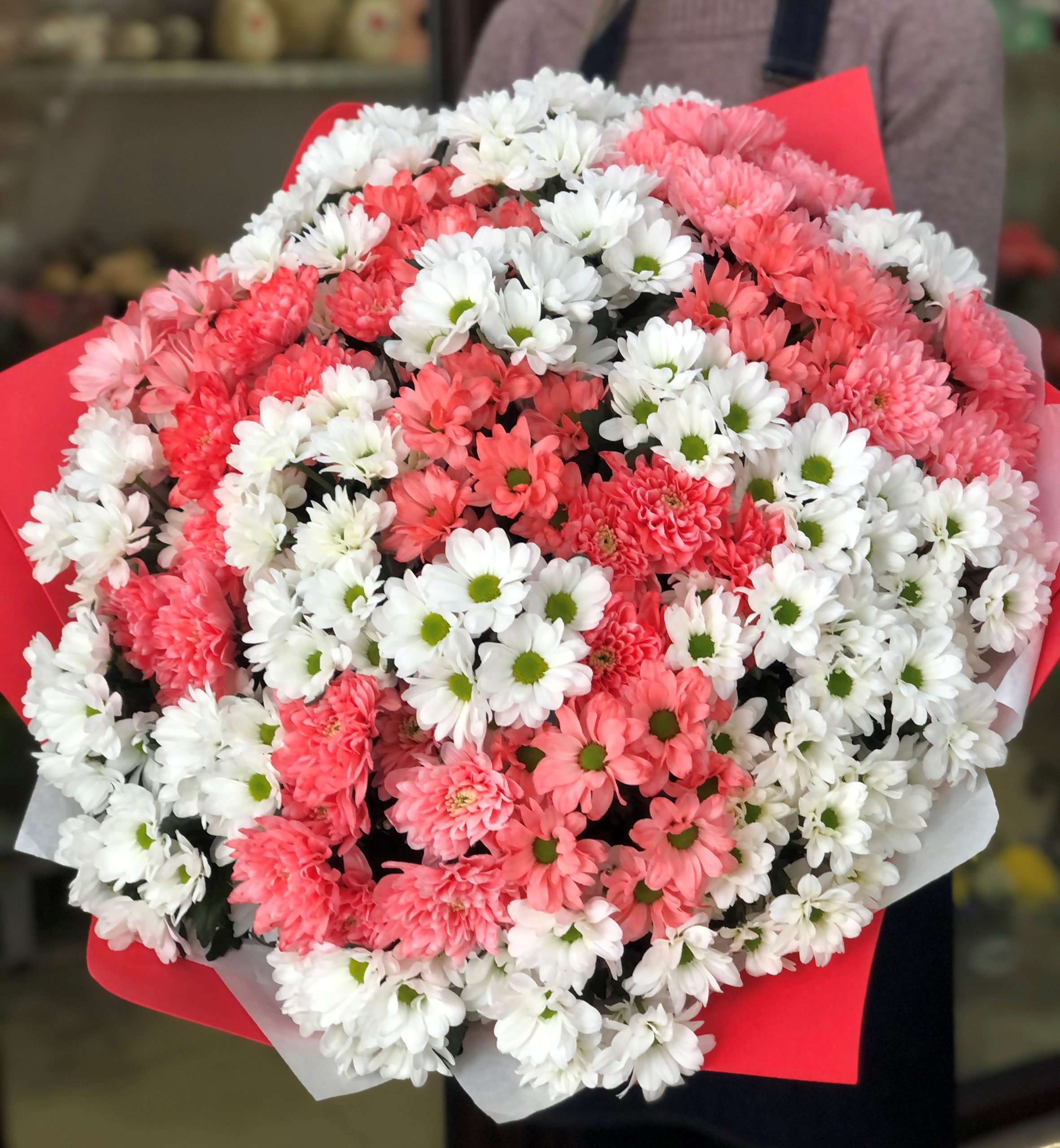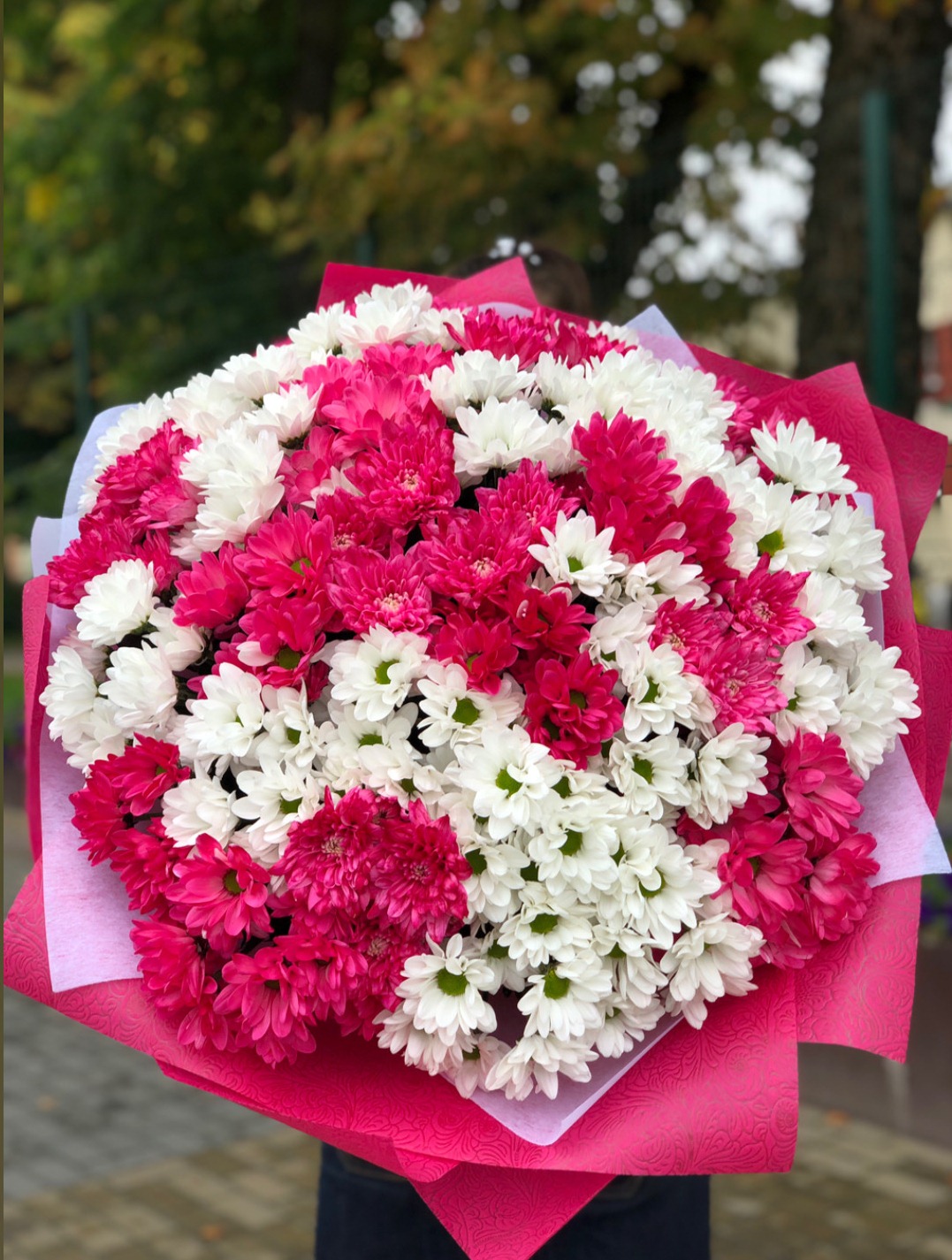 Букет подарочный “33 пожелания”. Состав: хризантема кустовая 33шт., подарочная упаковка, атласная лента. Цветовая гамма может быть изменена по желанию заказчика. Наличие уточняйте у менеджера. Производство РБ.