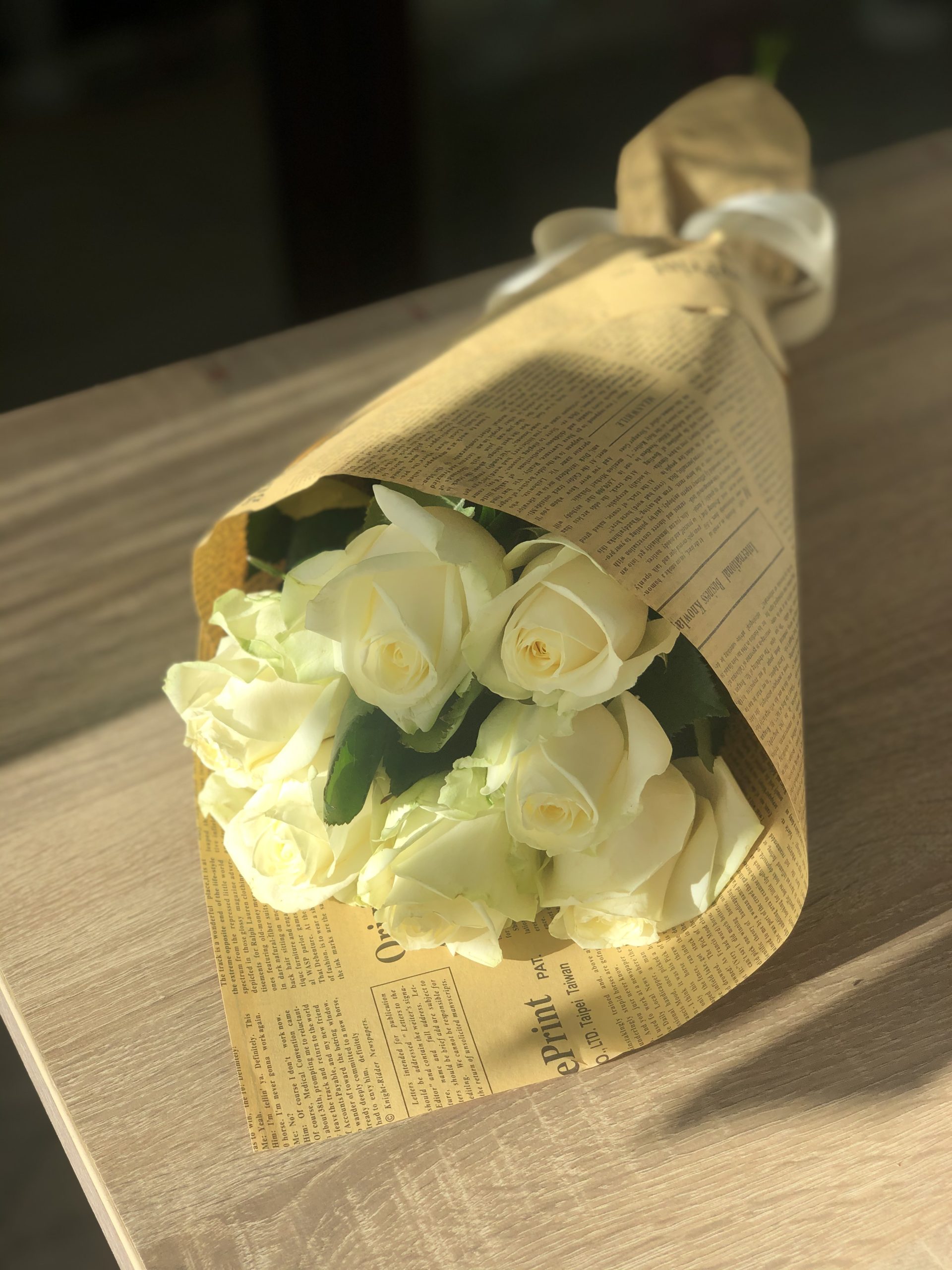 Букет подарочный “Просто так”. Состав: роза одноголовая 50см 7шт., подарочная упаковка, атласная лента. Цветовая гамма может быть изменена по желанию заказчика. Наличие уточняйте у менеджера. Производство РБ.