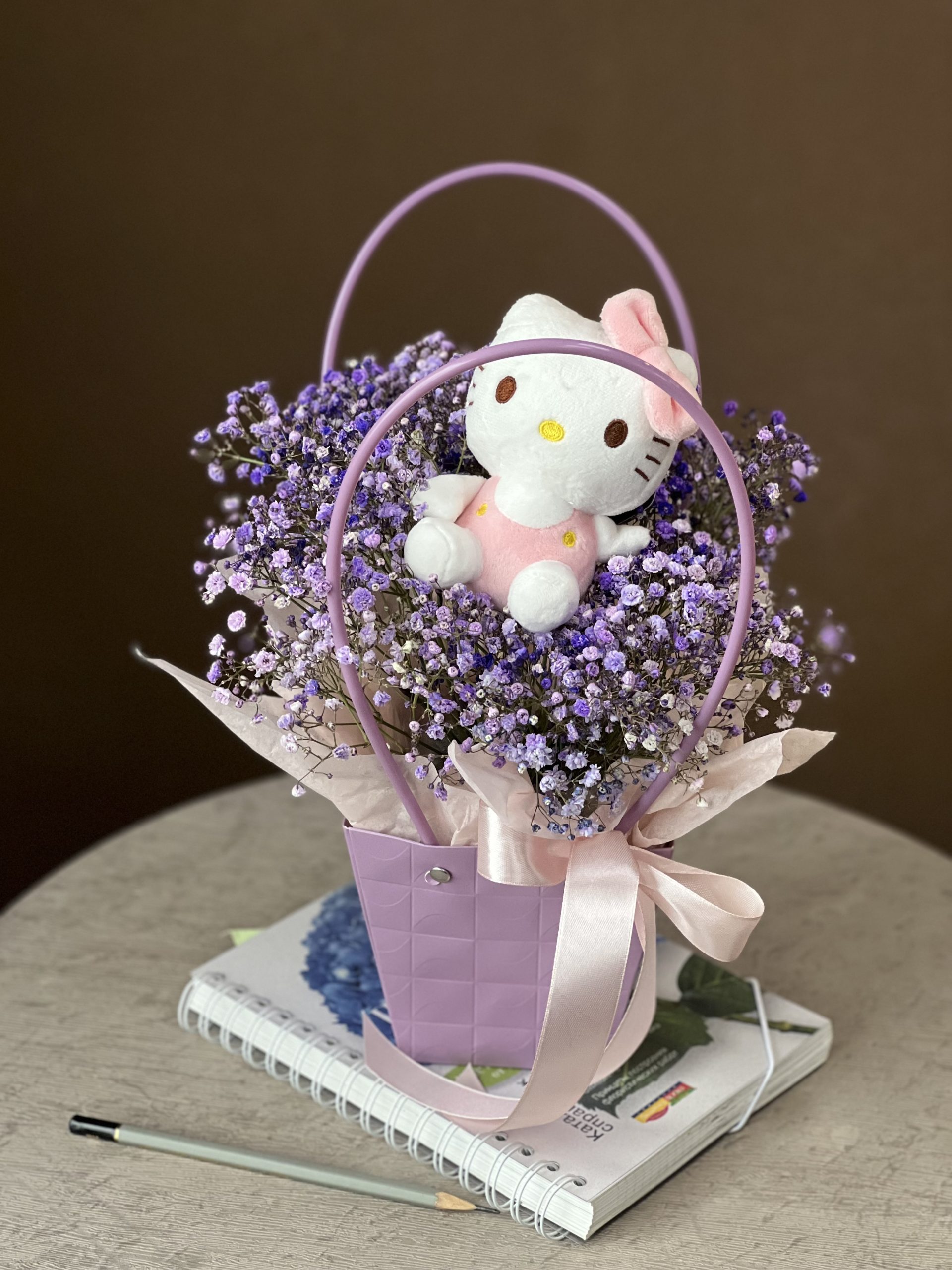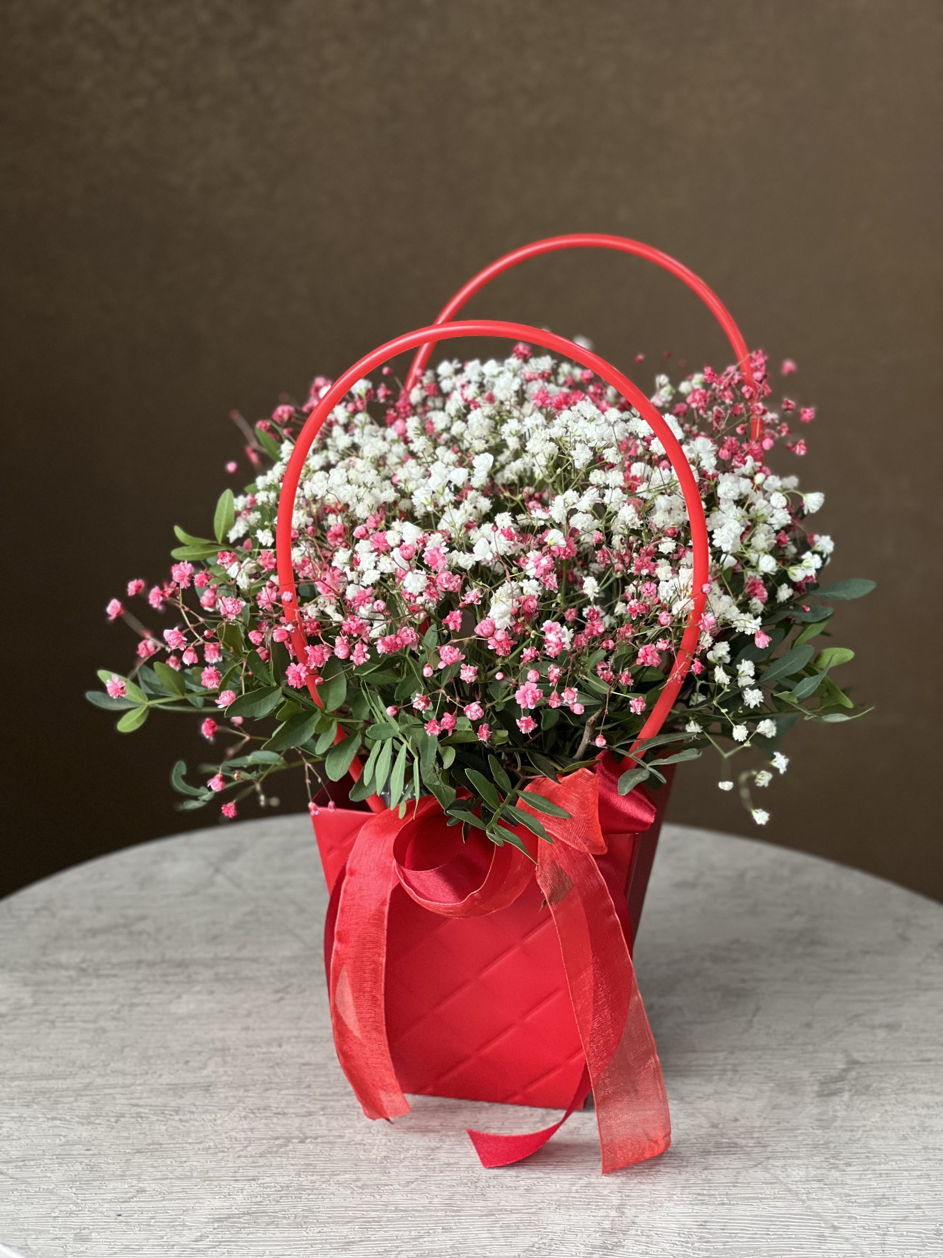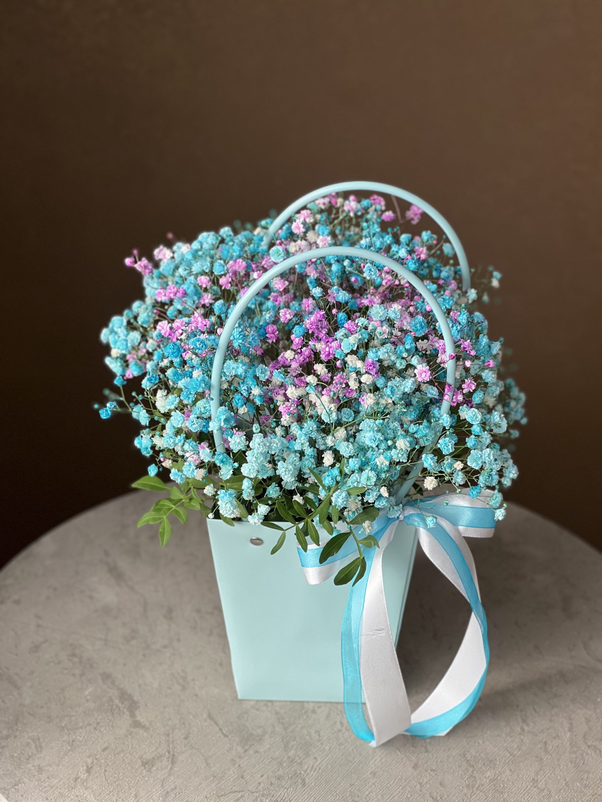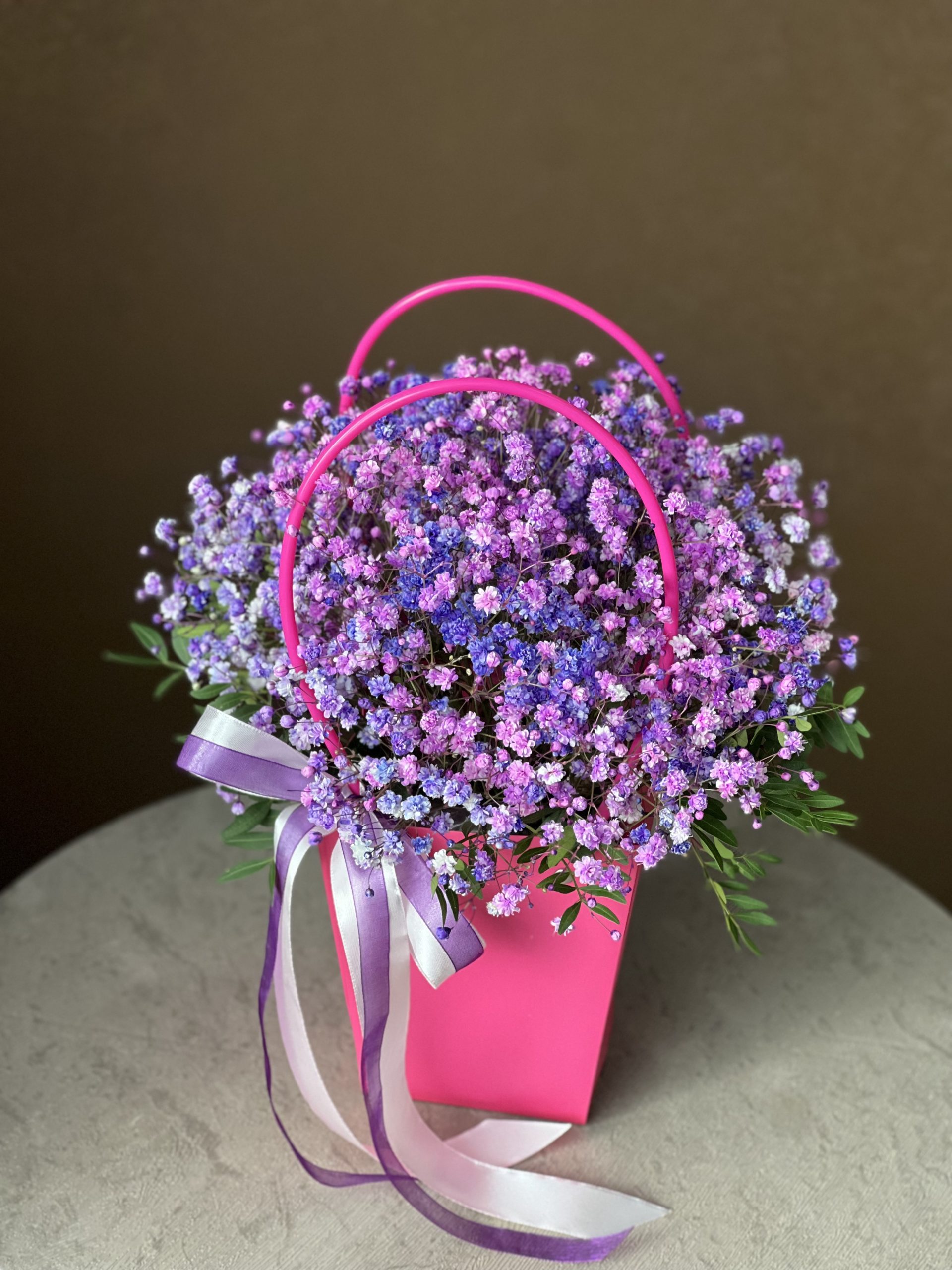 Композиция подарочная “Бабл гам”. Состав: гипсофила, зелень, губка флористическая, атласная лента, коробка декоративная. Цветовая гамма может быть изменена по желанию заказчика. Наличие уточняйте у менеджера. Производство РБ.