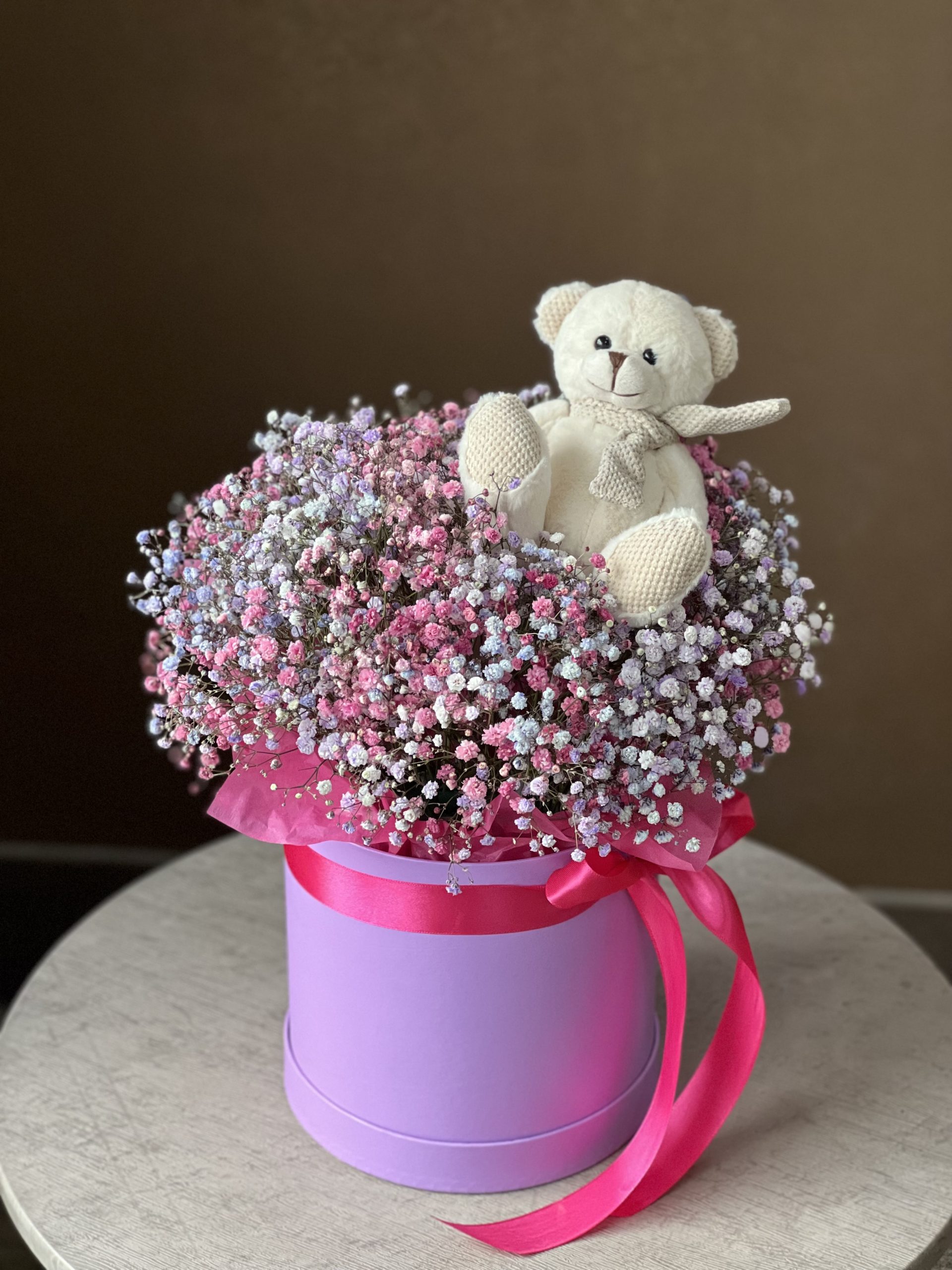 Композиция подарочная в корзинке “Конфетти”. Состав: гипсофила, губка флористическая, корзинка декоративная. Цветовая гамма может быть изменена по желанию заказчика. Наличие уточняйте у менеджера. Производство РБ. Композиция доступна по предзаказу.