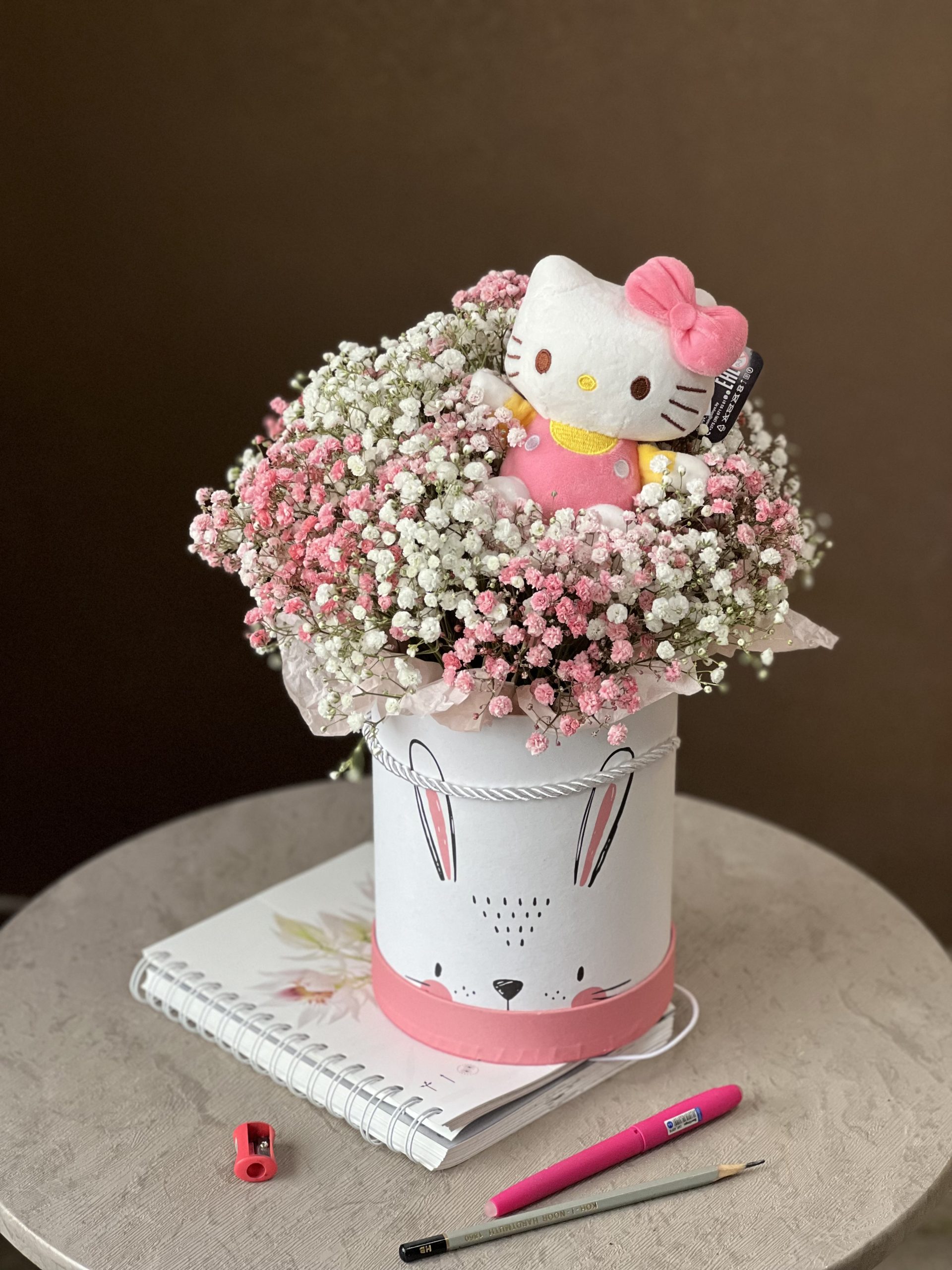 Композиция подарочная в корзинке “Мультяшка”. Состав: гипсофила, губка флористическая, корзинка декоративная. Цветовая гамма может быть изменена по желанию заказчика. Наличие уточняйте у менеджера. Производство РБ.